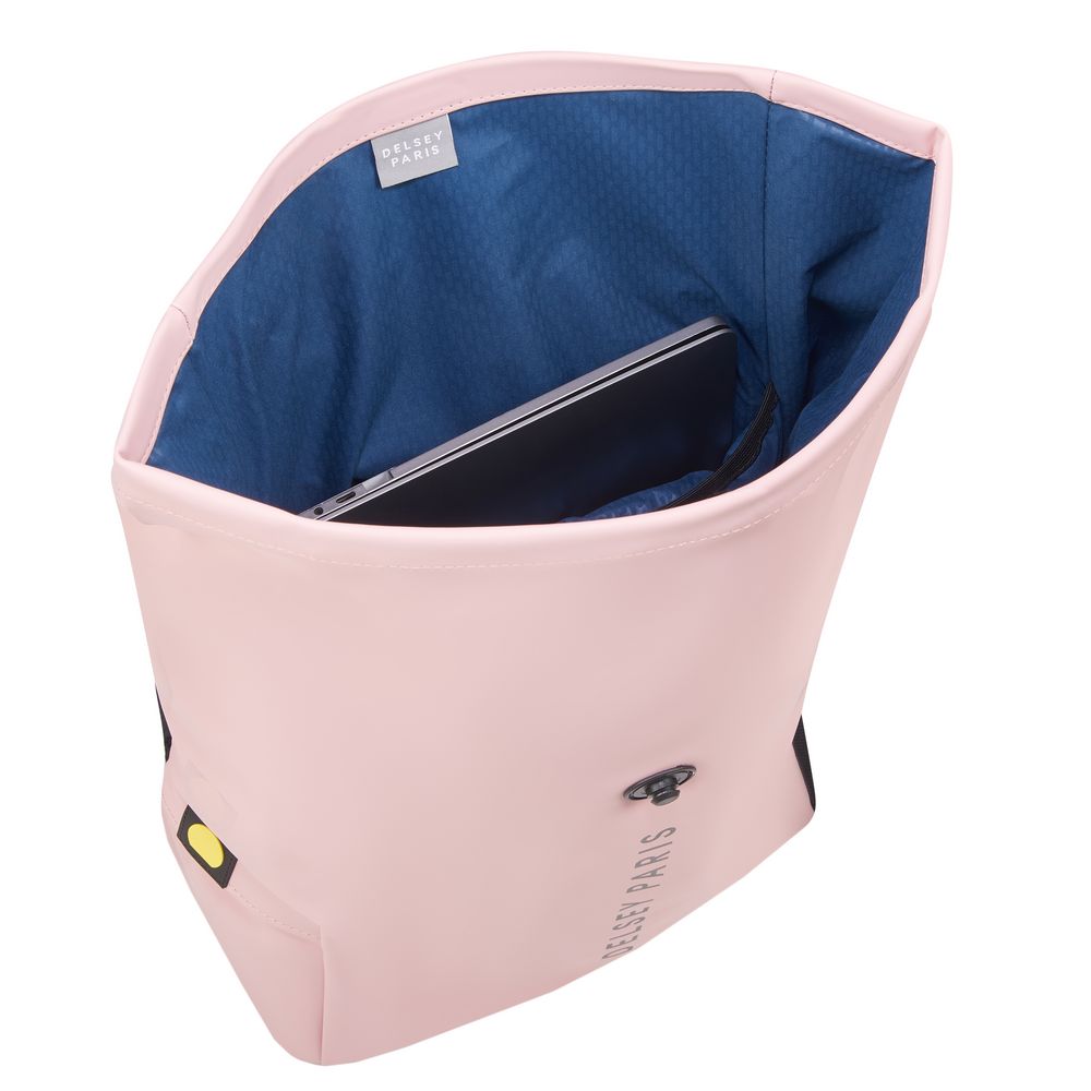 Вместимость рюкзака можно адаптировать благодаря застежке роллтоп: соедините магниты, заверните часть, оставшуюся свободной, и закрепите ее с помощью зажима.