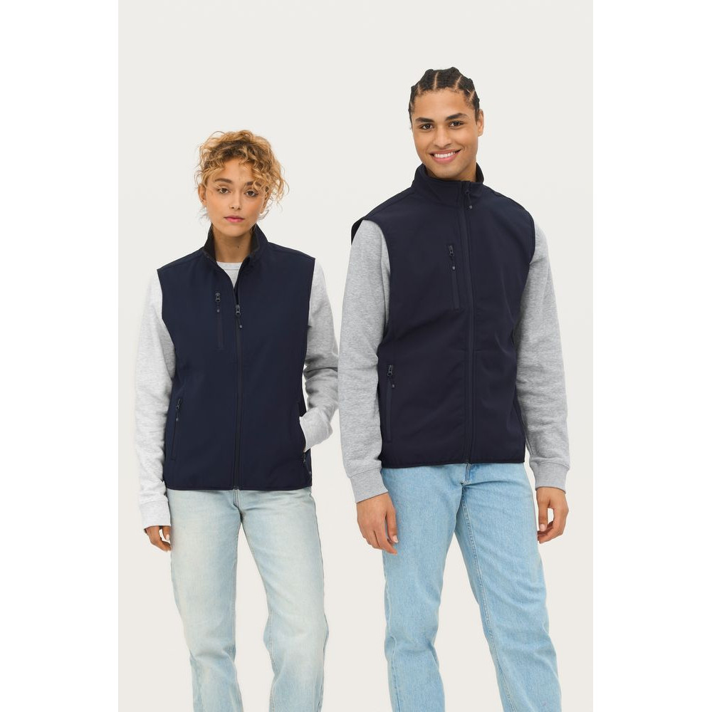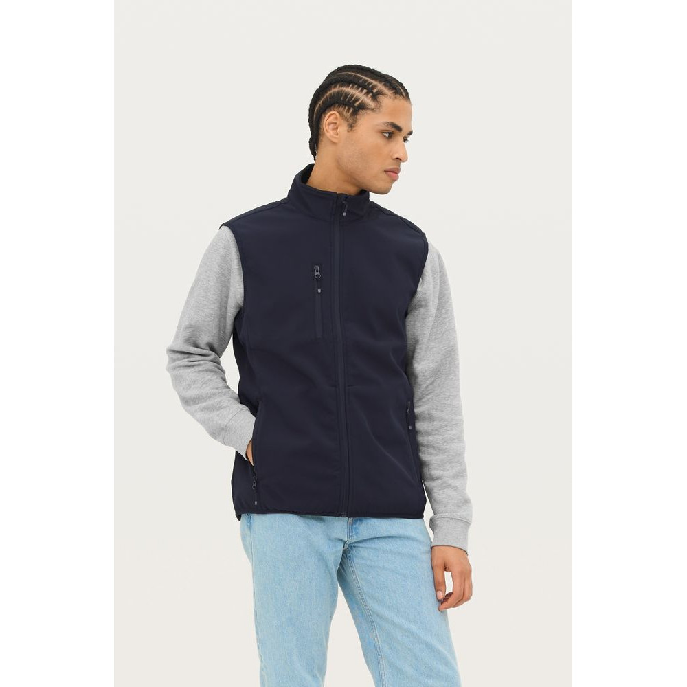Мужской водонепроницаемый и ветрозащитный жилет на молнии из трехслойного софтшелла с флисовой изнанкой. Выполнен из переработанного полиэстера.