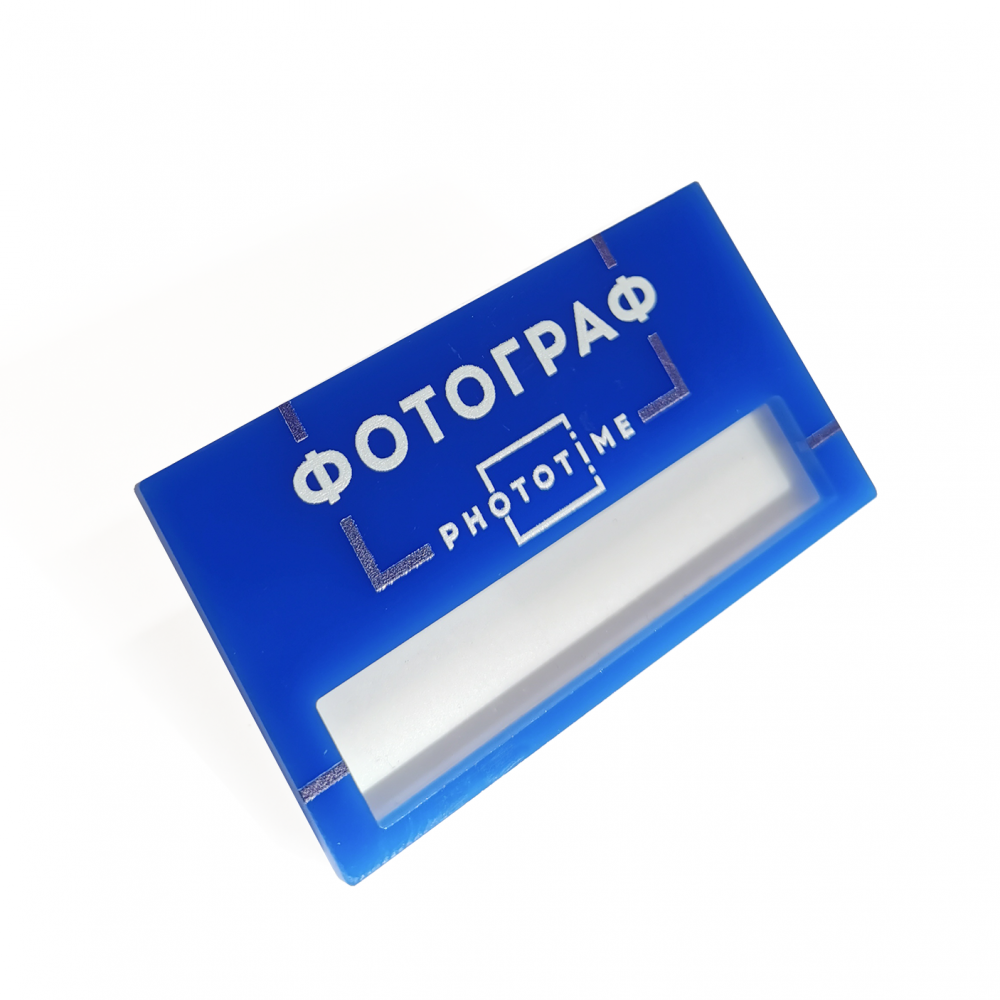 Материал бейджа – прозрачный или цветной акрил. Это практичный материал, стойкий к загрязнению и воде. Преимущество этого варианта – большой выбор цветов и оттенков акрила.