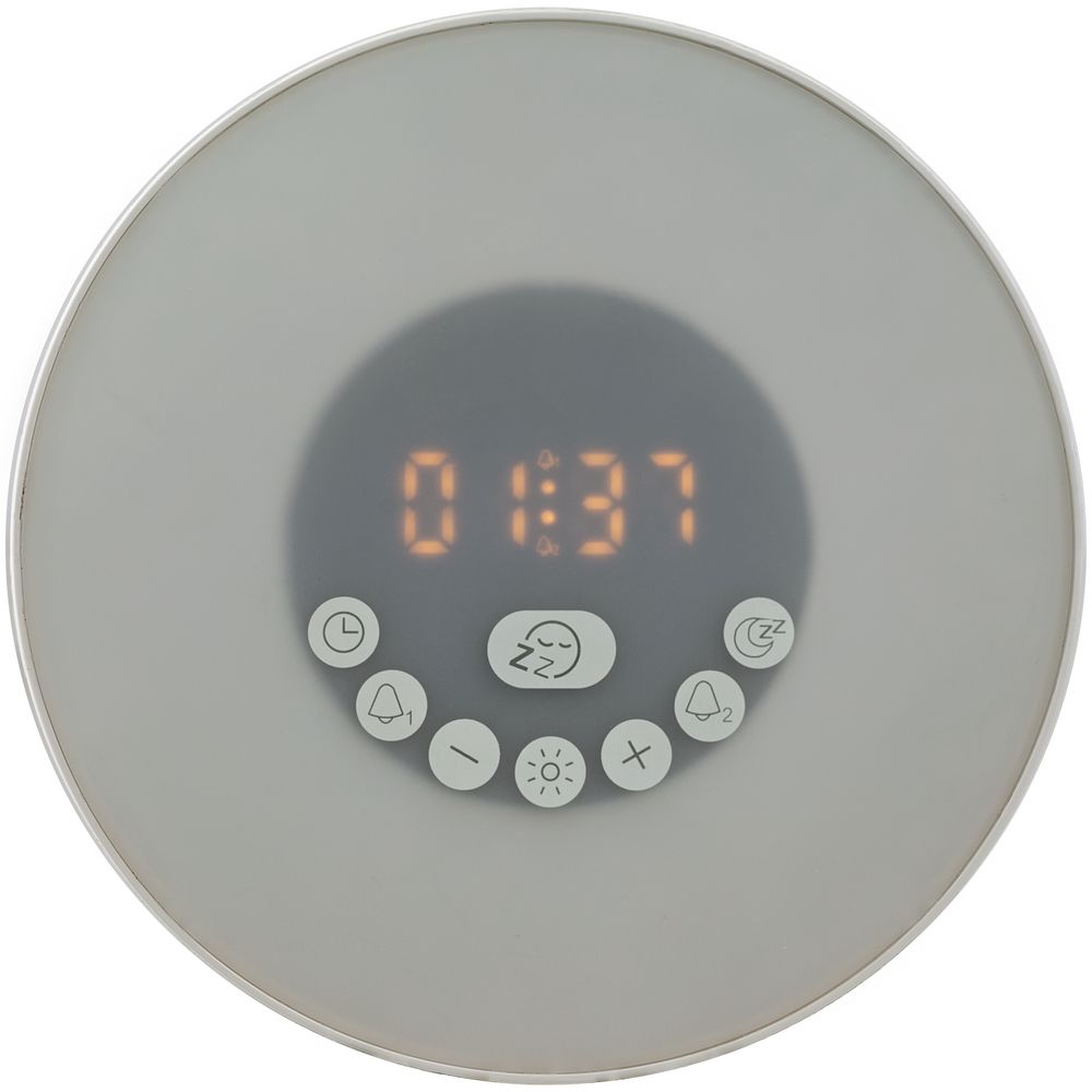 Лампа активируется за некоторое время до настроенного будильника и постепенно увеличивает яркость вплоть до момента, когда вы планируете окончательно проснуться. Эффект мягкого пробуждения можно дополнить звуками природы: шумом волн или пением птиц.