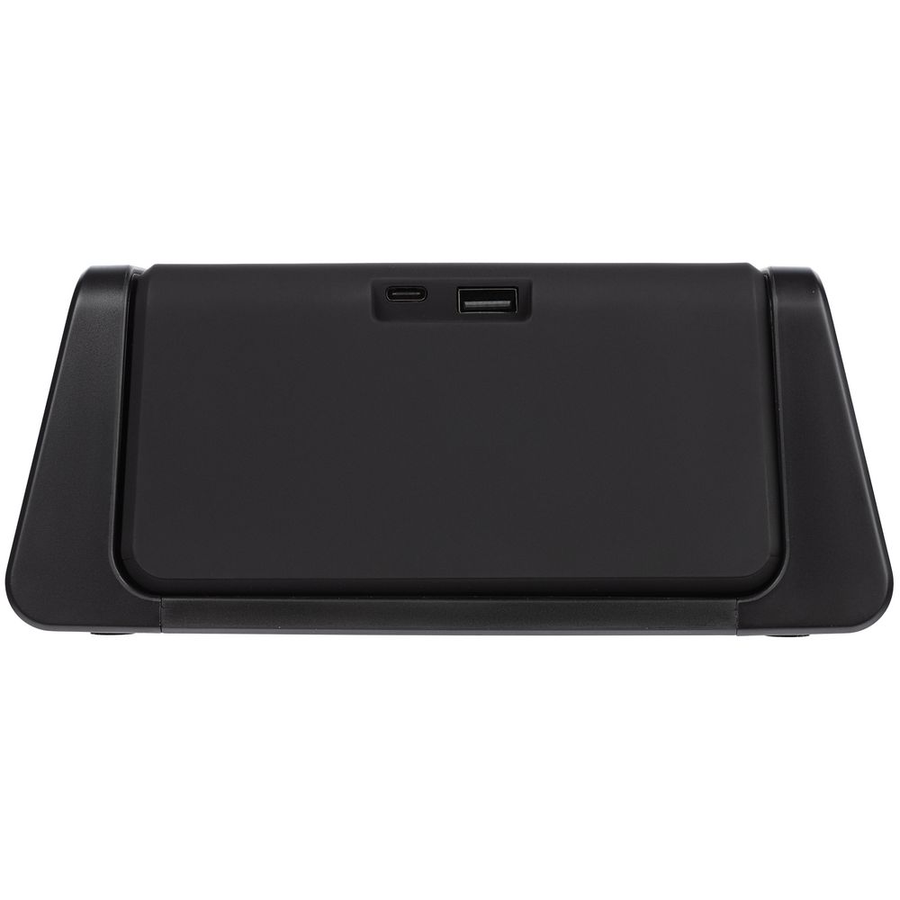 Зарядная станция совместима со всеми мобильными устройствами, поддерживающими технологию беспроводной зарядки Qi. Зарядка начнется автоматически при размещении смартфона на индукционной площадке. USB-порт для проводной зарядки расположен на задней стенке устройства.