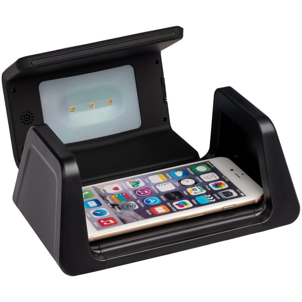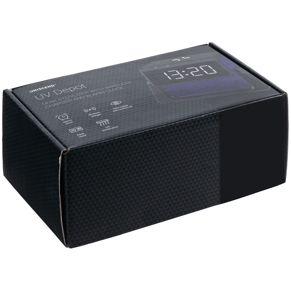 Настольный стерилизатор с беспроводной зарядкой и часами UV Depot, черный
