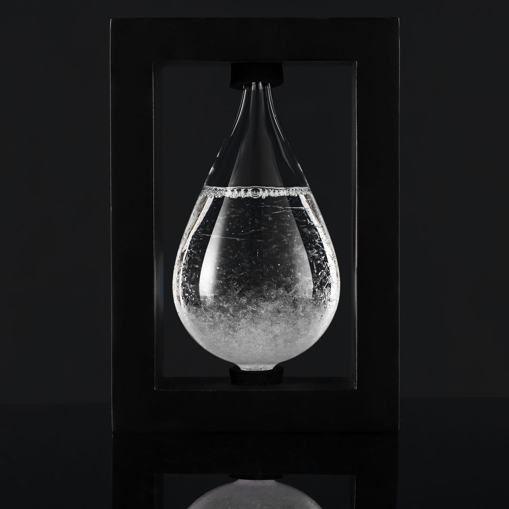 Стеклянная колба наполнена смесью дистиллированной воды, камфоры и этанола. В теории, когда на небо набегают облачка, внутри капсулы тоже происходят изменения. Технология дошла к нам сквозь многие века, и до сих пор нет четкой уверенности, работает ли она верно.